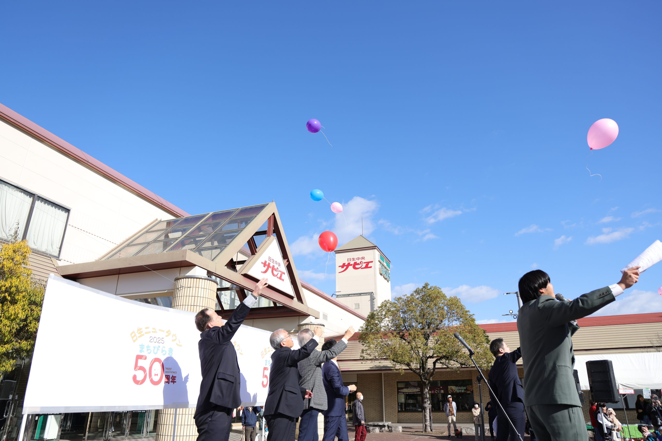 2025/11/22(土)、日生中央駅前の「人の広場」と日生中央サピエ内の特設会場において、日生ニュータウンまちびらき50周年記念フェスティバルを開催しました。