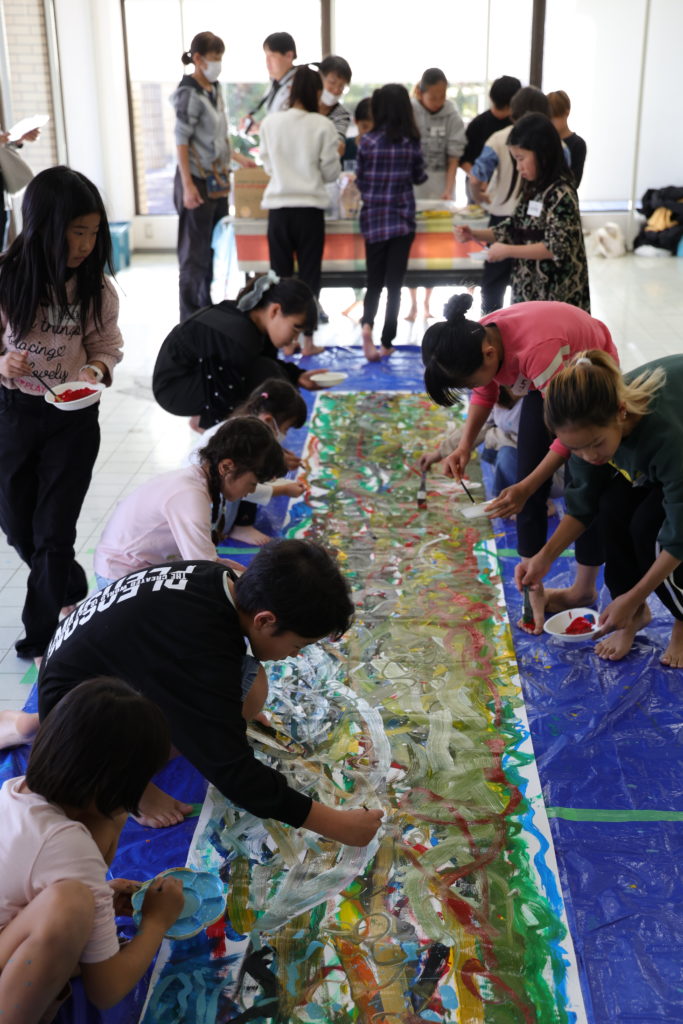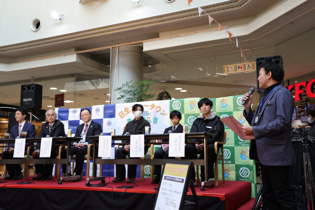 日生中央サピエ内の会場では、猪名川町長、川西市長、能勢電鉄社長と若者達とのトークイベントや、日生少年少女合唱団によるステージ、みんなで記念フラッグを描いて制作するアートイベントなどを開催しました。
